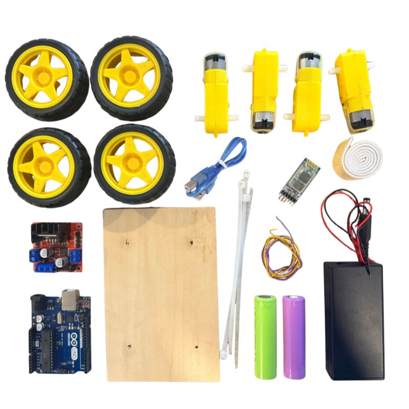 With a powerful 4-wheel drive system, this robot car delivers better traction and stability, making it perfect for indoor and outdoor robotics projects. The included Arduino board allows easy coding and customization, while the Bluetooth module (HC-05) lets you control the car wirelessly using your smartphone.